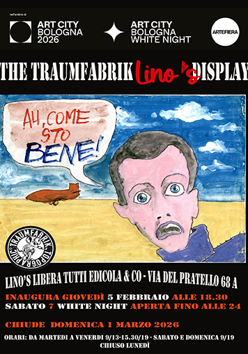 | In occasione di Arte Fiera 2026 Lino's Libera Tutti Edicola in via del Pratello 68/A, ospita fino a domenica 3 Marzo una piccola mostra di disegni originali della Traumfabrik |